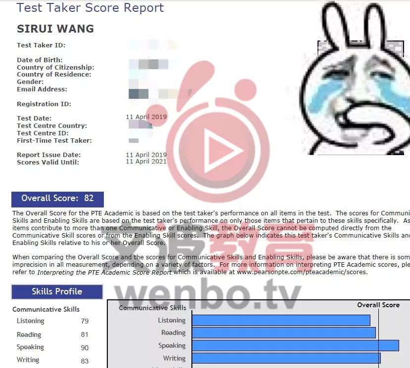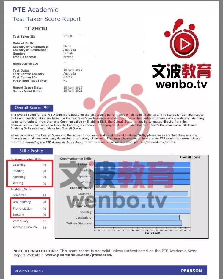 恭喜墨尔本悉尼霍巴特阿德莱德文波PTE学员Wang获得听力79,阅读81,口语90,写作83,总分82的好成绩