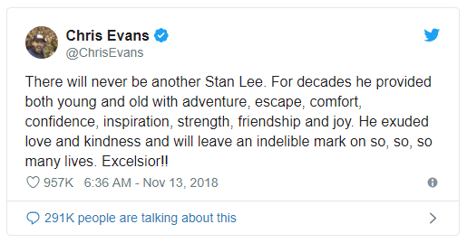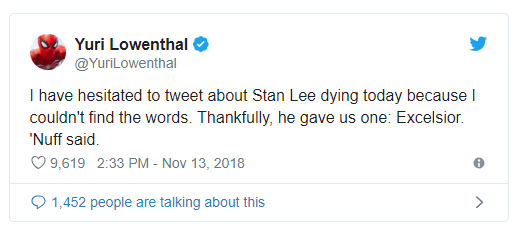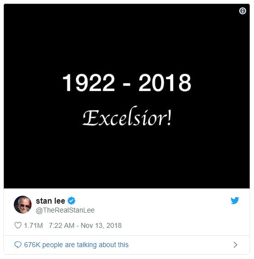 社交网络上也有很多人以Excelsior结尾来悼念这位漫画巨匠。