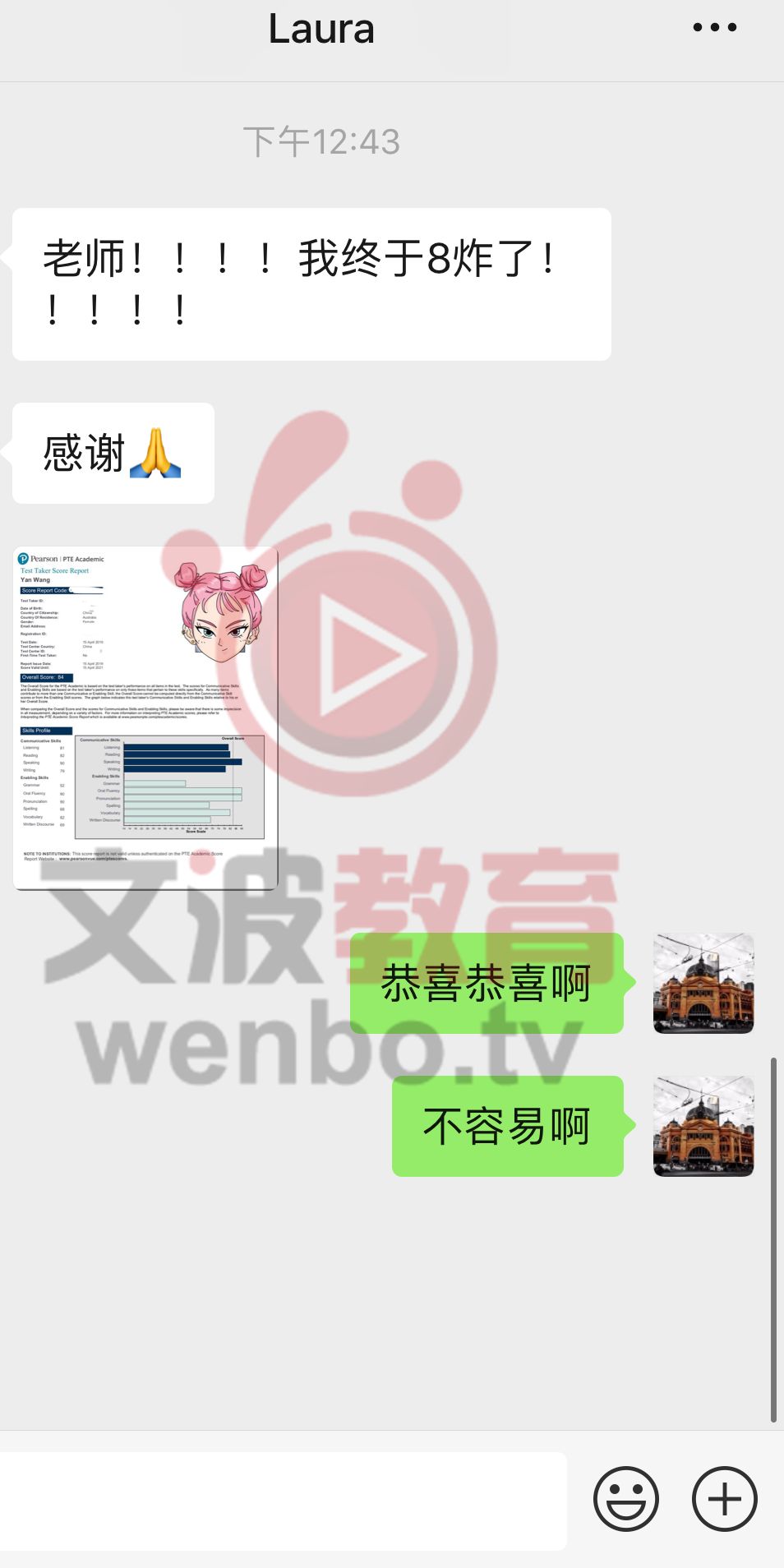 恭喜墨尔本悉尼霍巴特阿德莱德文波PTE学员Laura获得听力81,阅读82,口语90,写作79,总分84的好成绩!