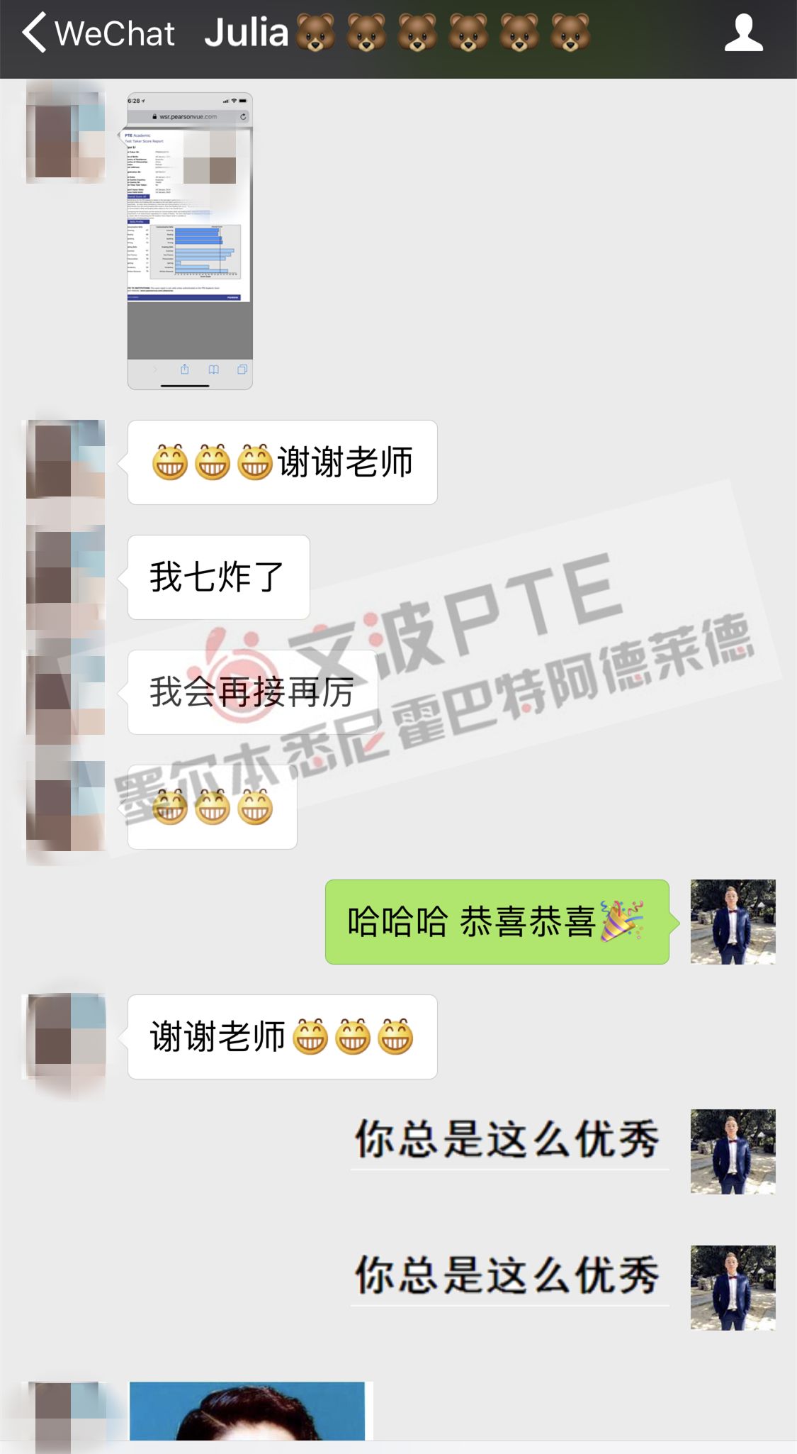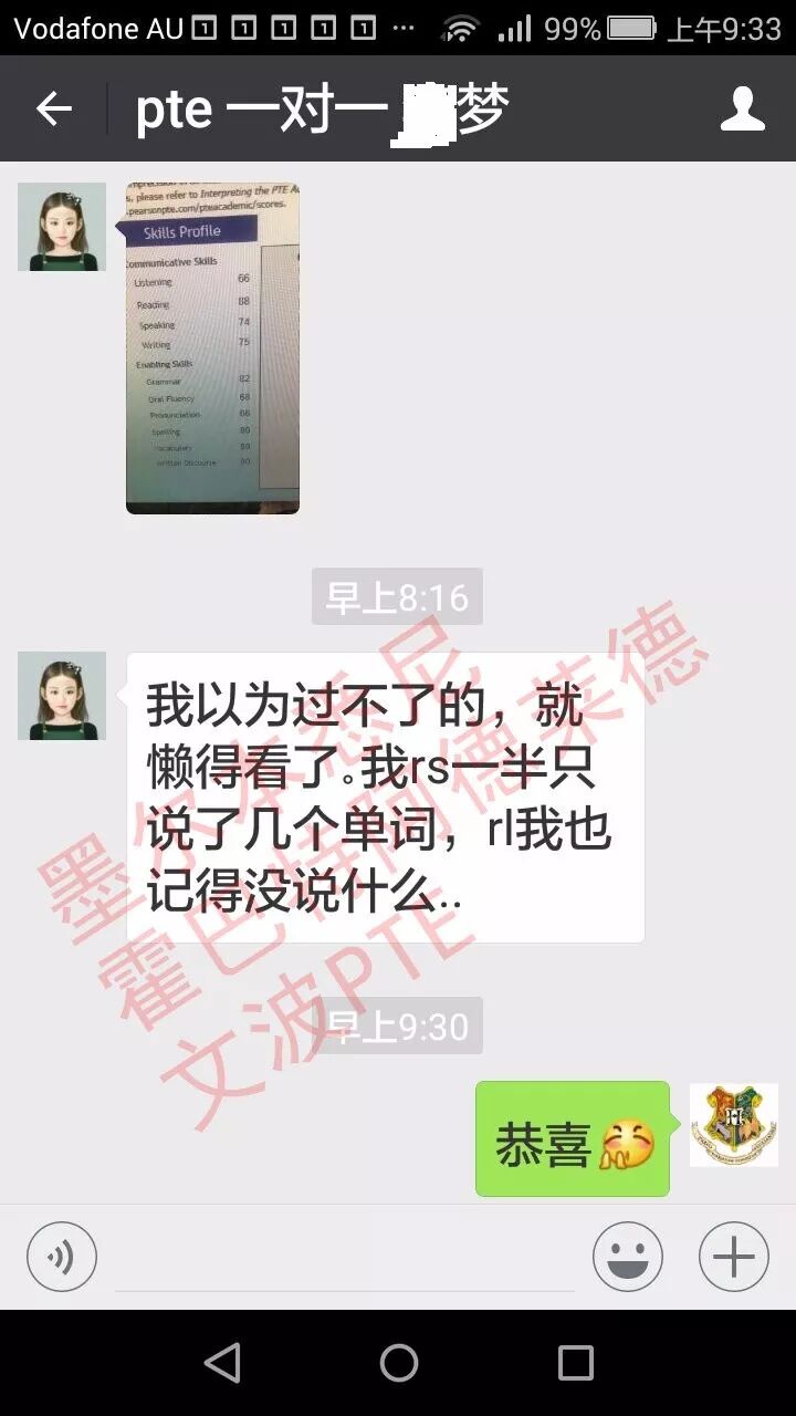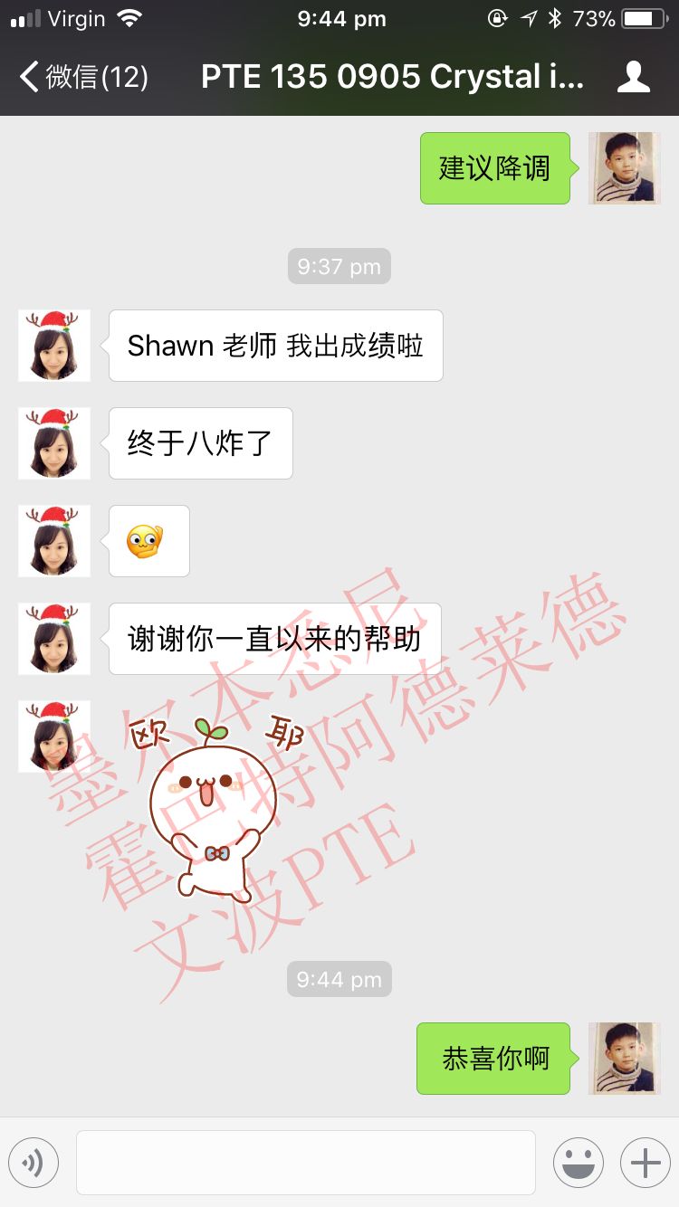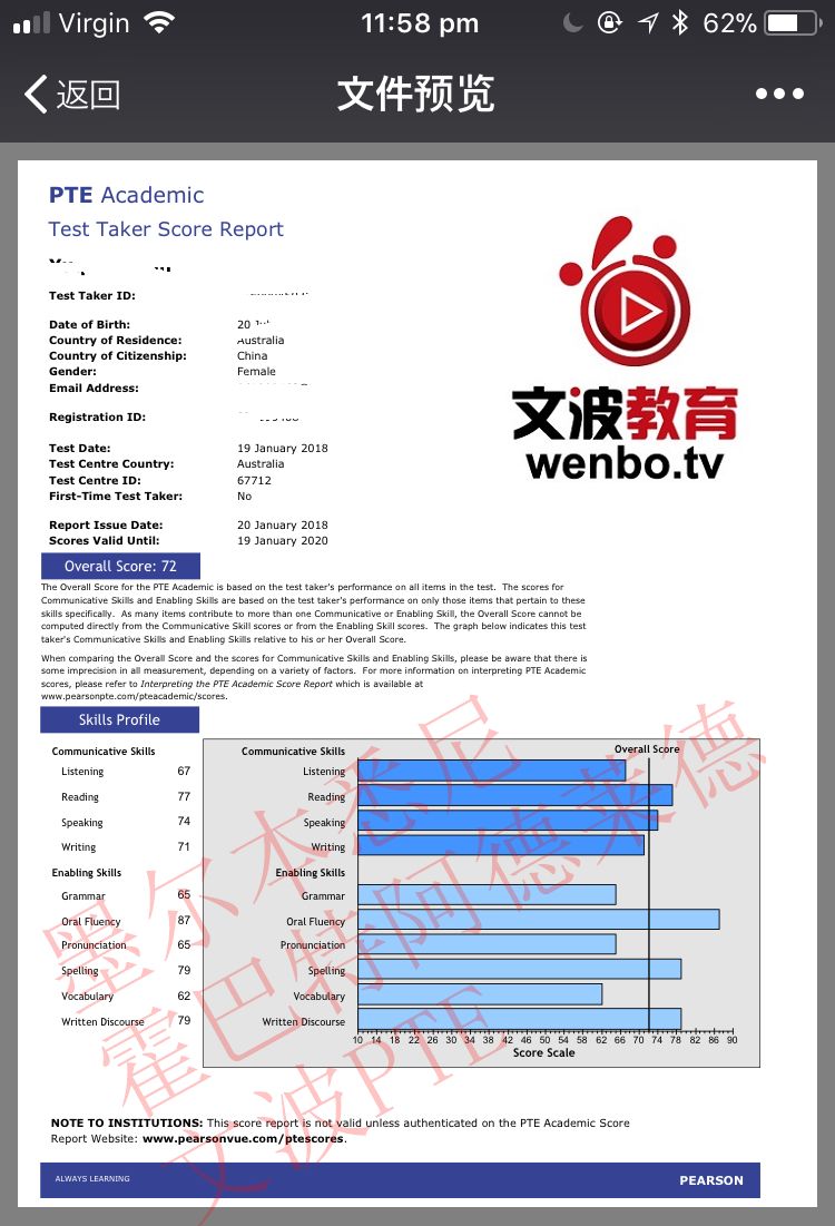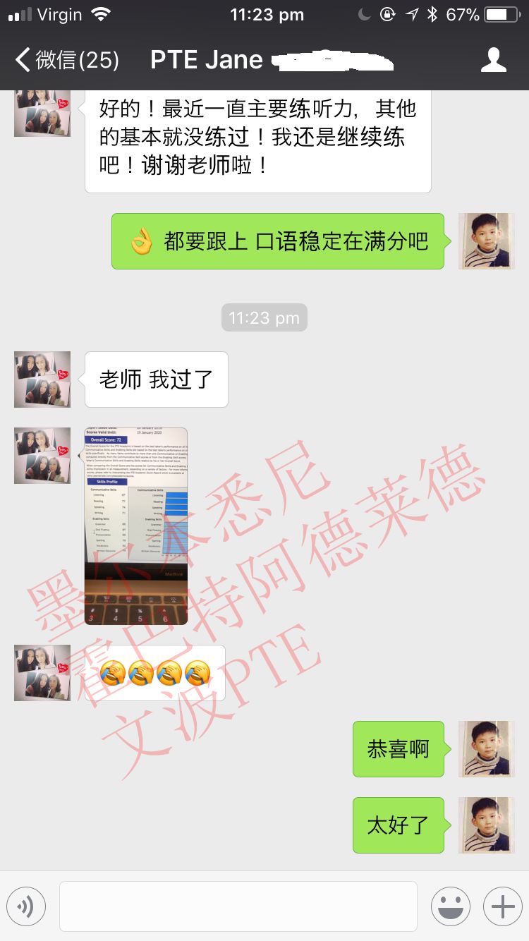 恭喜墨尔本悉尼霍巴特阿德莱德文波PTE学员Julia同学获得听力67,阅读68,口语71,写作72,总分69分的好成绩!也是一月文波PTE第52位通过四个七四个八的学员。
