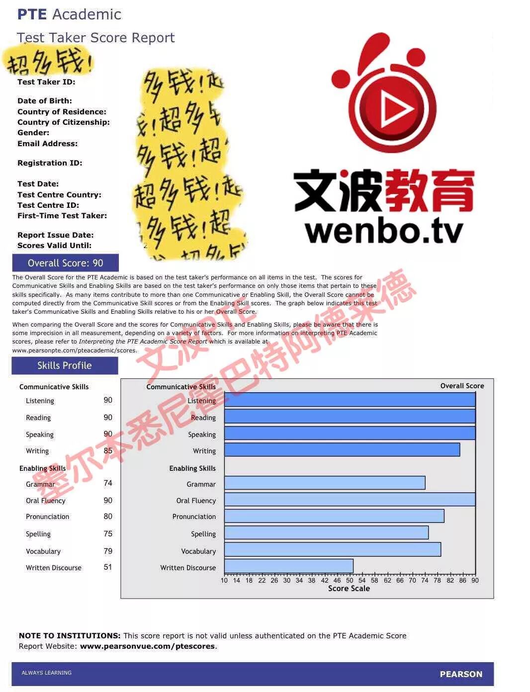 恭喜墨尔本悉尼霍巴特阿德莱德文波PTE学员Lin同学获得听力90,阅读90,口语90,写作85,总分90分的好成绩!也是一月文波PTE第90位通过四个七四个八的学员。