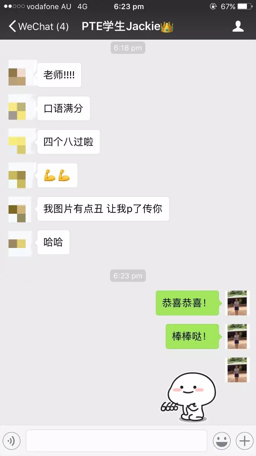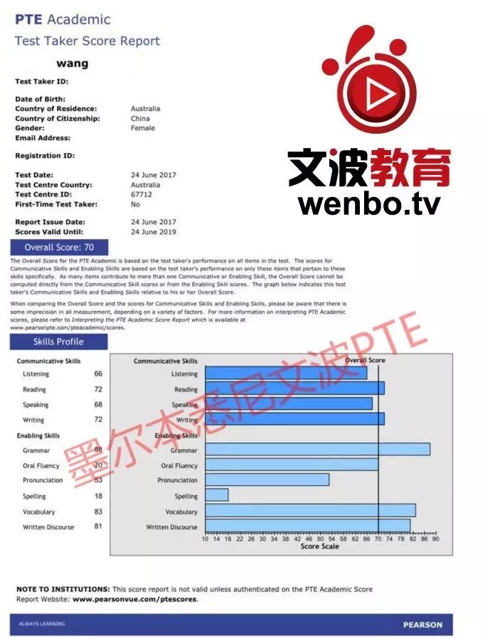 恭喜墨尔本悉尼文波PTE学员Sarah获得听力66,阅读72,口语68,写作72,总分70分的好成绩!也是七月文波PTE第2位通过四个七四个八的学员.