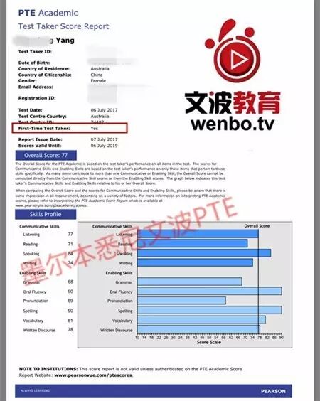 恭喜墨尔本悉尼文波PTE学员Rose获得听力77,阅读71,口语84,写作74,总分77分的好成绩!也是七月文波PTE第35位通过四个七四个八的学员.