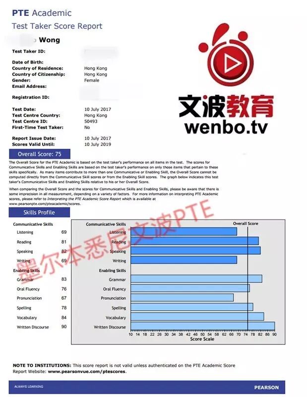 恭喜墨尔本悉尼文波PTE学员Mabel获得听力69,阅读81,口语82,写作69,总分75分的好成绩!也是七月文波PTE第40位通过四个七四个八的学员.