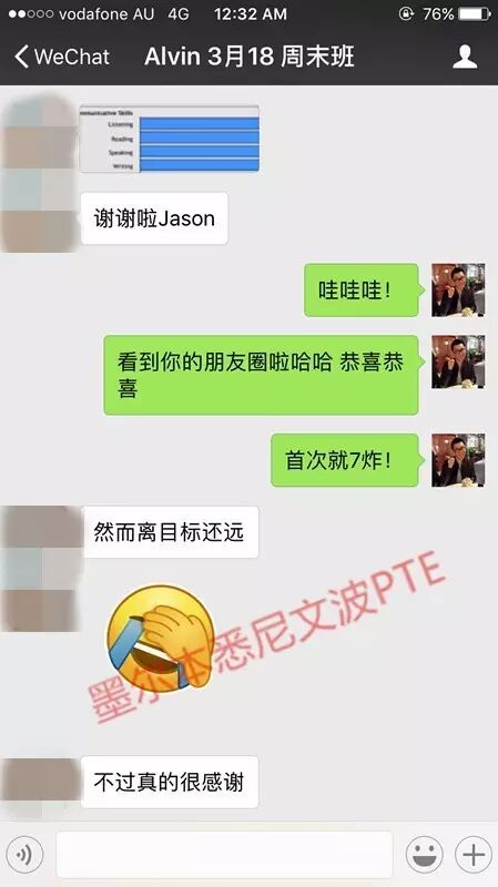 恭喜墨尔本悉尼文波PTE学员Alvin获得听力76,阅读76,口语75,写作74,总分75分的好成绩!也是七月文波PTE第36位通过四个七四个八的学员.