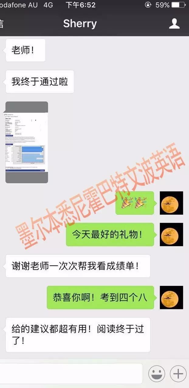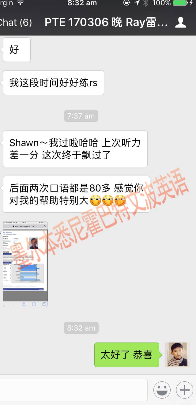 恭喜墨尔本悉尼霍巴特文波PTE学员Ray获得听力67,阅读69,口语80,写作71,总分70分的好成绩!也是九月文波PTE第39位通过四个七四个八的学员.
