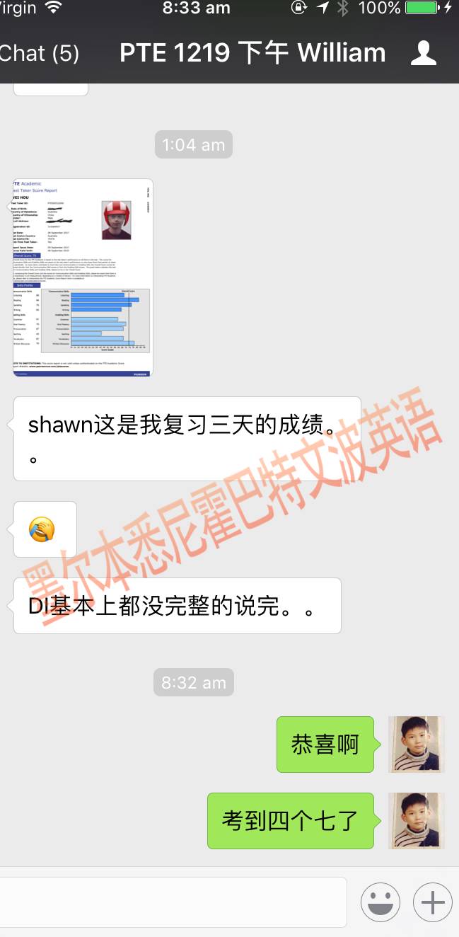 恭喜墨尔本悉尼霍巴特文波PTE学员William获得听力68,阅读84,口语76,写作65,总分73分的好成绩!也是九月文波PTE第38位通过四个七四个八的学员.
