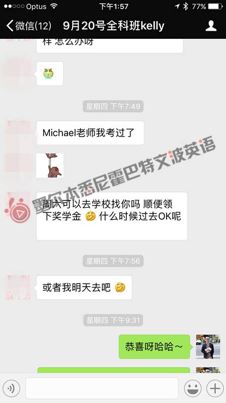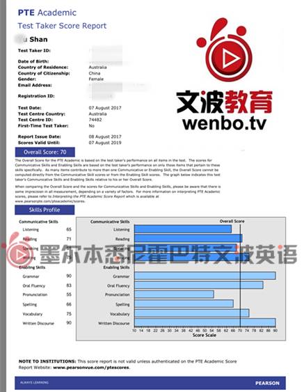 恭喜墨尔本悉尼霍巴特文波PTE学员Kelly获得听力65,阅读71,口语68,写作75,总分70分的好成绩!也是九月文波PTE第34位通过四个七四个八的学员.