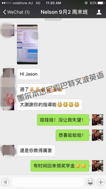 恭喜墨尔本悉尼霍巴特文波PTE学员Nelson获得听力86,阅读89,口语90,写作82,总分90分的好成绩!也是九月文波PTE第100位通过四个七四个八的学员.