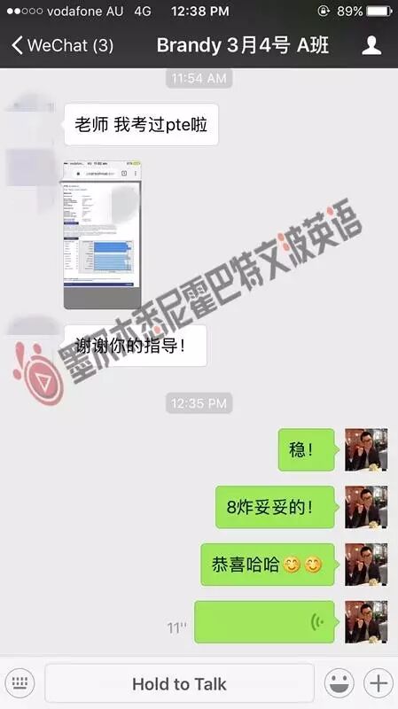 喜墨尔本悉尼文波PTE学员Brandy获得听力80,阅读83,口语90,写作80,总分83分的好成绩!也是八月文波PTE第40位通过四个七四个八的学员.