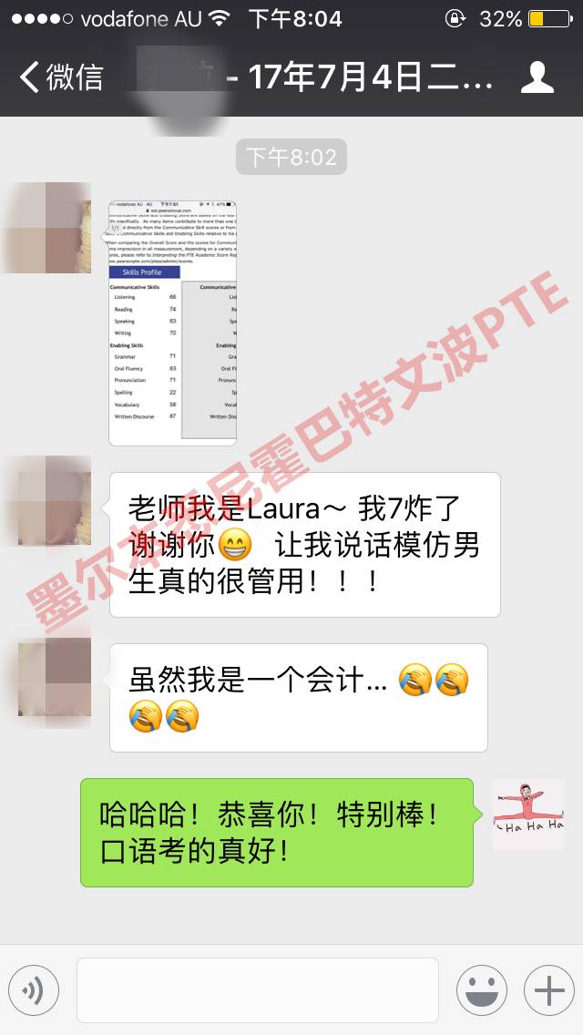 恭喜墨尔本悉尼文波PTE学员Laura获得听力66,阅读74,口语83,写作70,总分73分的好成绩!也是八月文波PTE第45位通过四个七四个八的学员.