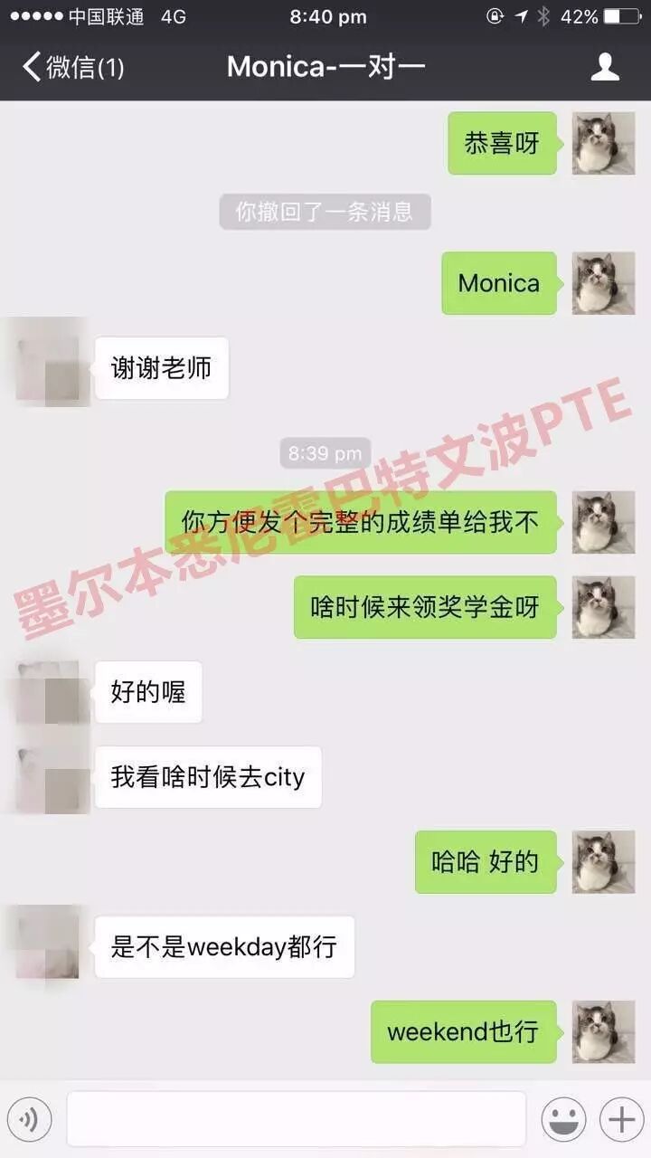 恭喜墨尔本悉尼文波PTE学员Julia获得听力68,阅读83,口语81,写作81,总分78分的好成绩!也是八月文波PTE第77位通过四个七四个八的学员.
