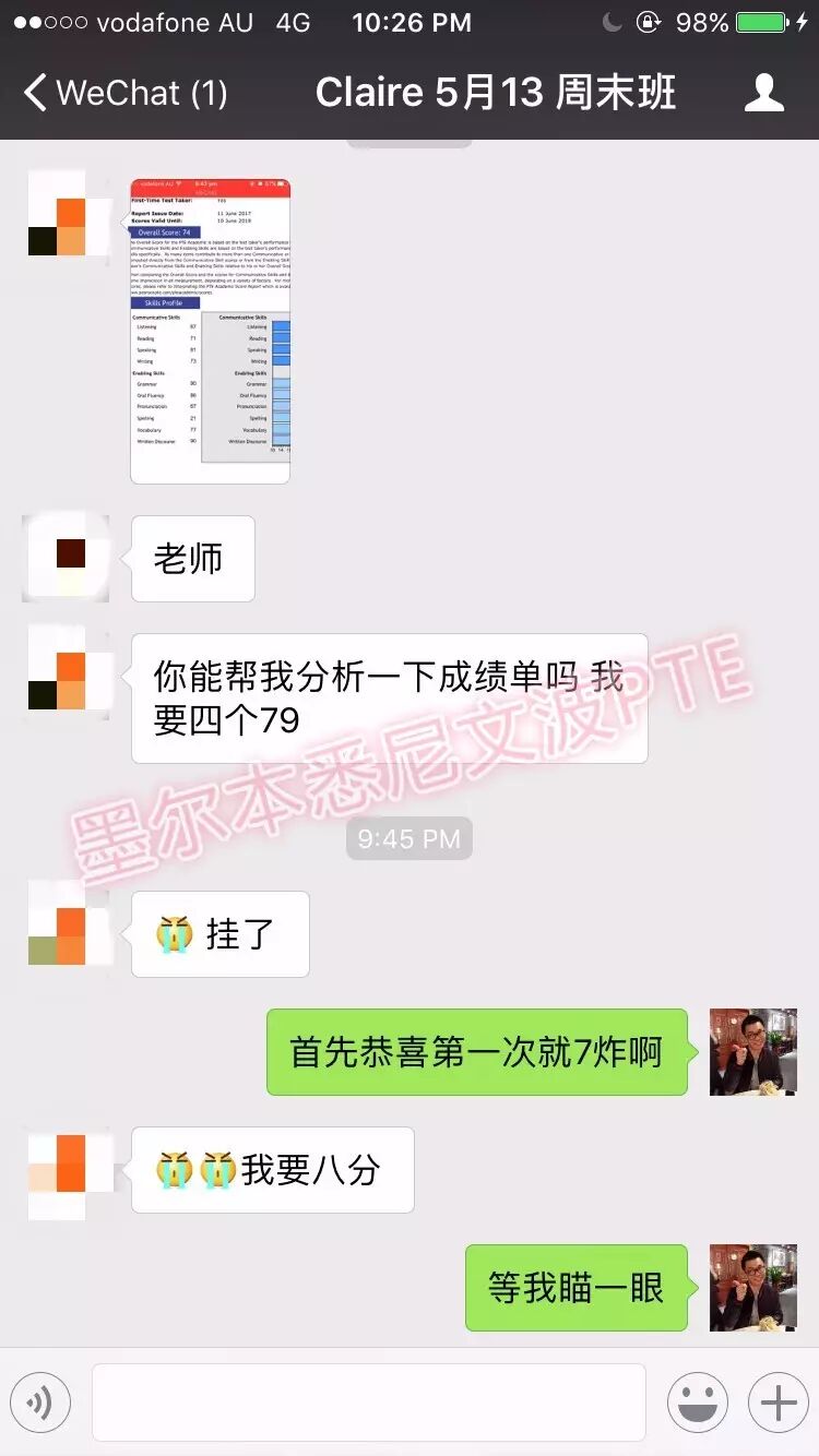 恭喜墨尔本悉尼文波PTE学员Claire获得听力67,阅读71,口语81,写作73,总分74分的好成绩!也是六月文波PTE第30位通过四个七四个八的学员.
