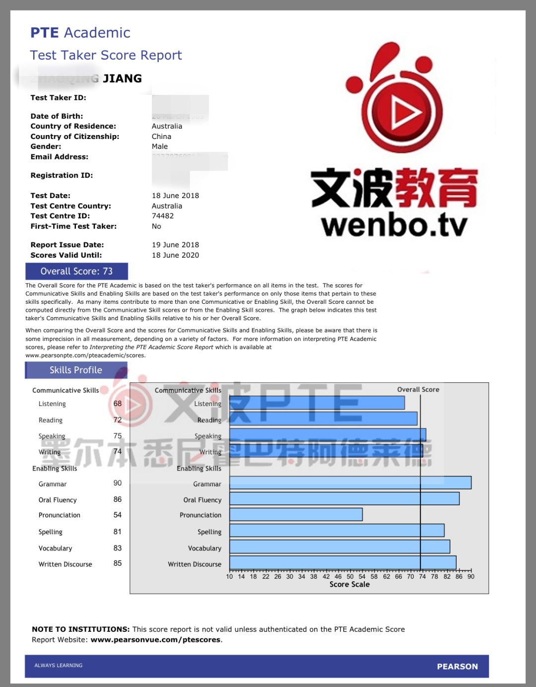 恭喜文波PTE六月第51-60位通过学员四个七四个八! posted in PTE高分榜 on 2018 年 6 月 24 日 by 文波教育 恭喜墨尔本悉尼霍巴特文波PTE七月第51位到第60位通过PTE四个七及四个八的学员!大家都要加油哦! 8炸!口语听力满分! 恭喜墨尔本悉尼霍巴特阿德莱德文波PTE学员Tian同学获得听力90,阅读81,口语90,写作86,总分87的好成绩!也是六月文波PTE第51位通过四个七四个八的学员。 8炸!口语写作满分 恭喜墨尔本悉尼霍巴特阿德莱德文波PTE学员Kong同学获得听力86,阅读80,口语90,写作90,总分86分的好成绩!也是六月文波PTE第52位通过四个七四个八的学员。 8炸! 恭喜墨尔本悉尼霍巴特阿德莱德文波PTE学员Tracy同学获得听力89,阅读79,口语85,写作85,总分85的好成绩!也是六月文波PTE第53位通过四个七四个八的学员。 恭喜墨尔本悉尼霍巴特阿德莱德文波PTE学员Sun同学获得听力69,阅读73,口语77,写作71,总分74分的好成绩!也是六月文波PTE第54位通过四个七四个八的学员。 8炸!口语满分! 恭喜墨尔本悉尼霍巴特阿德莱德文波PTE学员Qi同学获得听力87,阅读84,口语85,写作90,总分88的好成绩!也是六月文波PTE第55位通过四个七四个八的学员。 8炸!阅读满分! 恭喜墨尔本悉尼霍巴特阿德莱德文波PTE学员Sun同学获得听力81,阅读90,口语87,写作87,总分88分的好成绩!也是六月文波PTE第56位通过四个七四个八的学员。 阅读满分! 恭喜墨尔本悉尼霍巴特阿德莱德文波PTE学员Xiao同学获得听力71,阅读90,口语75,写作75,总分79分的好成绩!也是六月文波PTE第57位通过四个七四个八的学员。 恭喜墨尔本悉尼霍巴特阿德莱德文波PTE学员Jiang同学获得听力68,阅读72,口语75,写作74,总分73分的好成绩!也是六月文波PTE第58位通过四个七四个八的学员。 口语满分! 恭喜墨尔本悉尼霍巴特阿德莱德文波PTE学员John同学获得听力74,阅读80,口语90,写作79,总分80分的好成绩!也是六月文波PTE第59位通过四个七四个八的学员。 恭喜墨尔本悉尼霍巴特阿德莱德文波PTE学员Teresa同学获得听力70,阅读70,口语76,写作77,总分74的好成绩!也是六月文波PTE第60位通过四个七四个八的学员。 您可能感兴趣的文章还有: 恭喜文波PTE十二月第11-20位通过学员四个七四个八! 恭喜文波PTE六月第41-50位通过学员四个七四个八! 恭喜文波PTE三月第131-140位通过学员四个七四个八! 8炸+口语满分!恭喜文波PTE八月第69位学员Tina高分四个八!