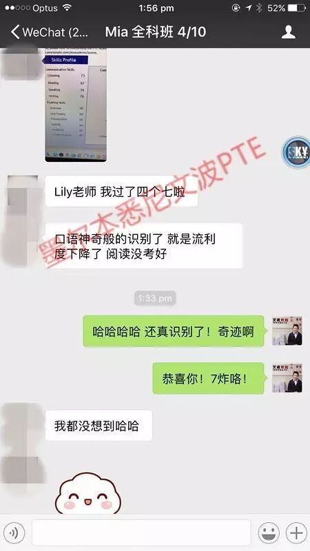 恭喜墨尔本悉尼文波PTE学员Mia获得听力73,阅读67,口语74,写作78,总分72分的好成绩!也是六月文波PTE第85位通过四个七四个八的学员.