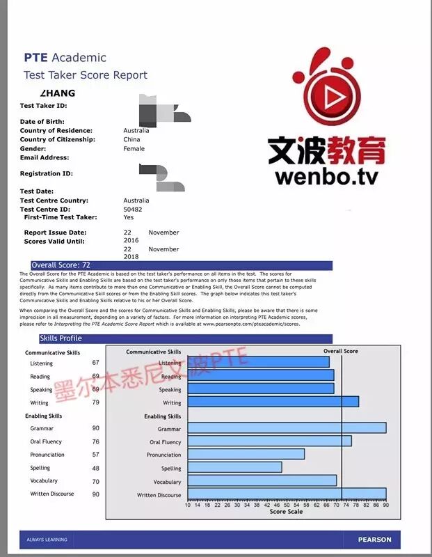 恭喜文波PTE十一月第99位学员Kiki高分通过四个七四个八! posted in PTE高分榜 on 2016 年 11 月 25 日 by 文波教育 恭喜墨尔本悉尼文波PTE学员Kiki在11月22号取得听力67,阅读69,口语69,写作79,总分72分的好成绩!也是十一月文波PTE第99位通过四个七四个八的学员! 您可能感兴趣的文章还有: 口语满分!恭喜文波PTE八月第15位学员Rey高分通过四个七四个八! 恭喜文波PTE八月第3位通过学员Martin高分通过四个七四个八! 恭喜文波PTE六月第47位通过学员Vivian高分通过四个七四个八! 恭喜墨尔本文波PTE本月第22位通过学员Carol高分四个7四个8!
