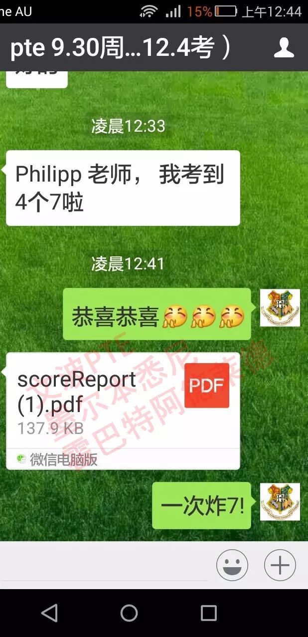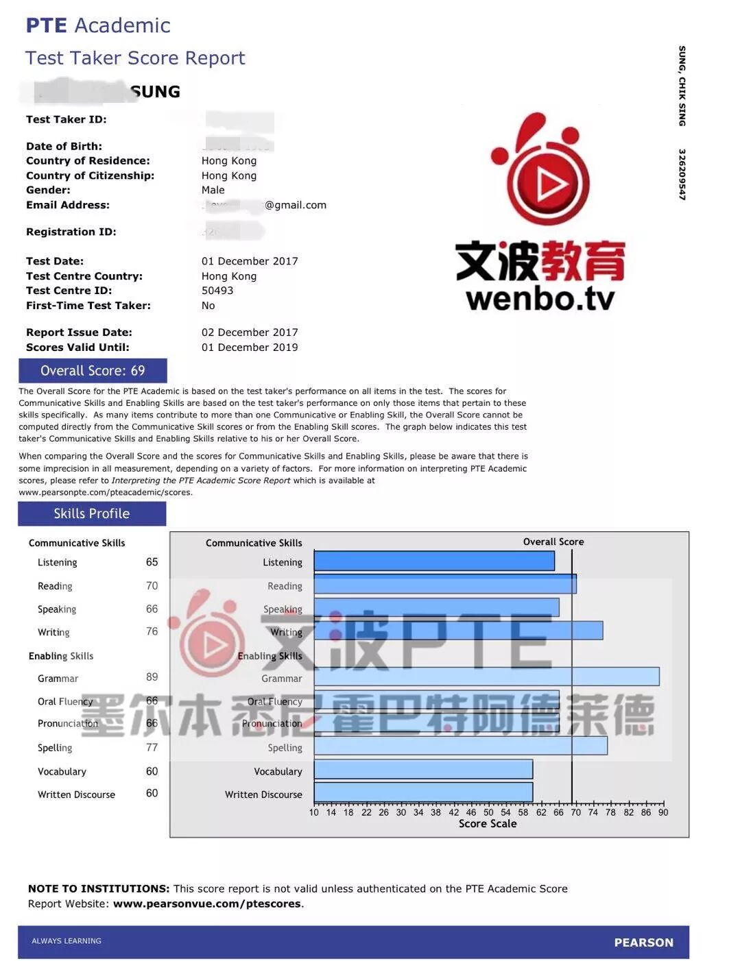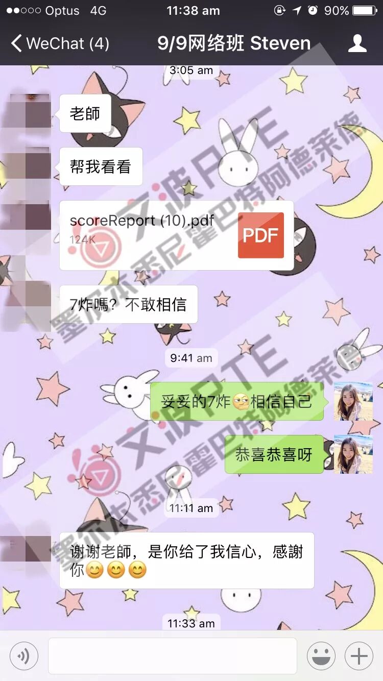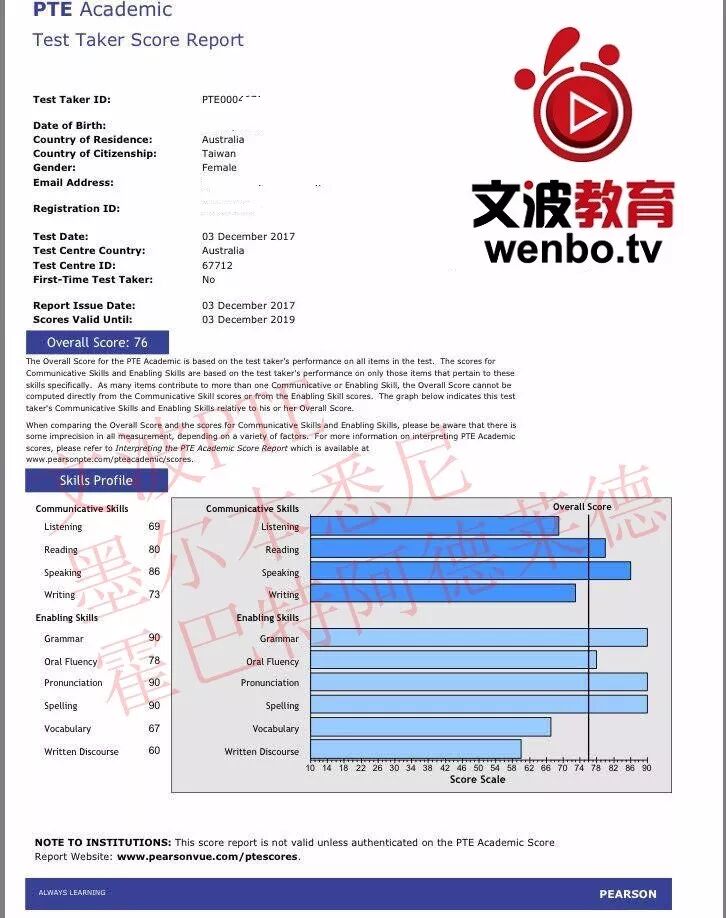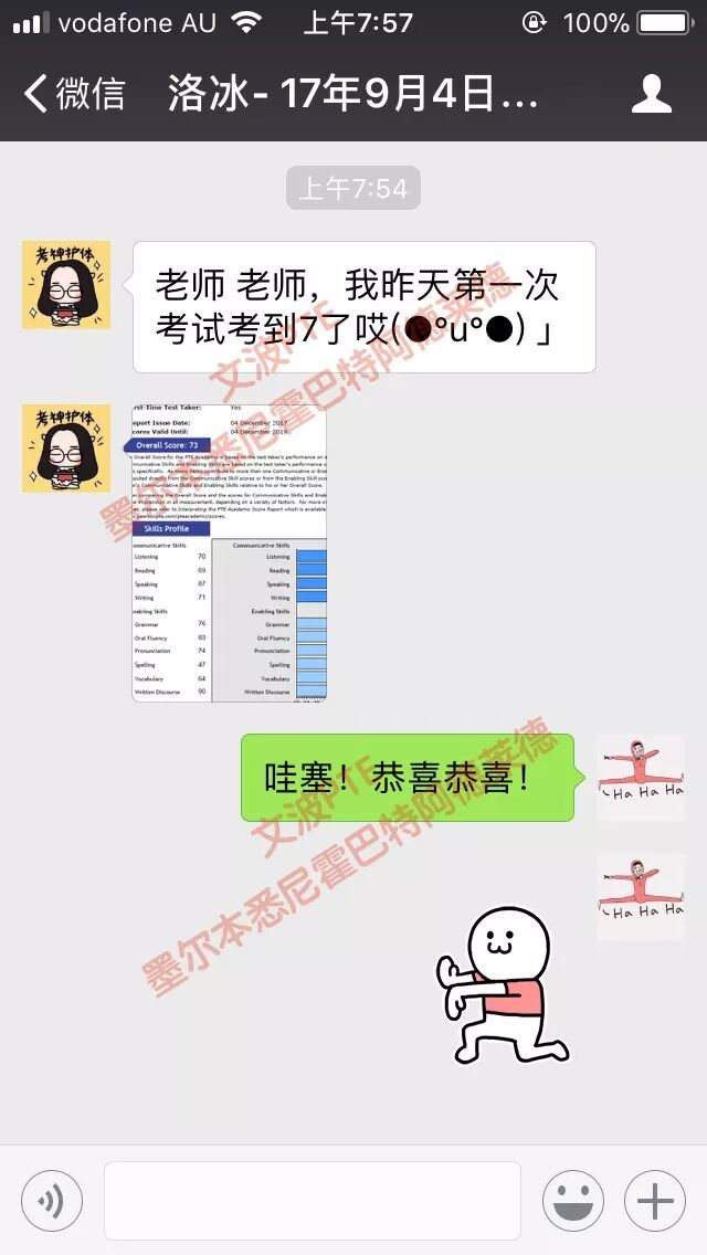 恭喜墨尔本悉尼霍巴特阿德莱德文波PTE学员Steven同学获得听力65,阅读70,口语66,写作76,总分69分的好成绩!也是十二月文波PTE第3位通过四个七四个八的学员.
