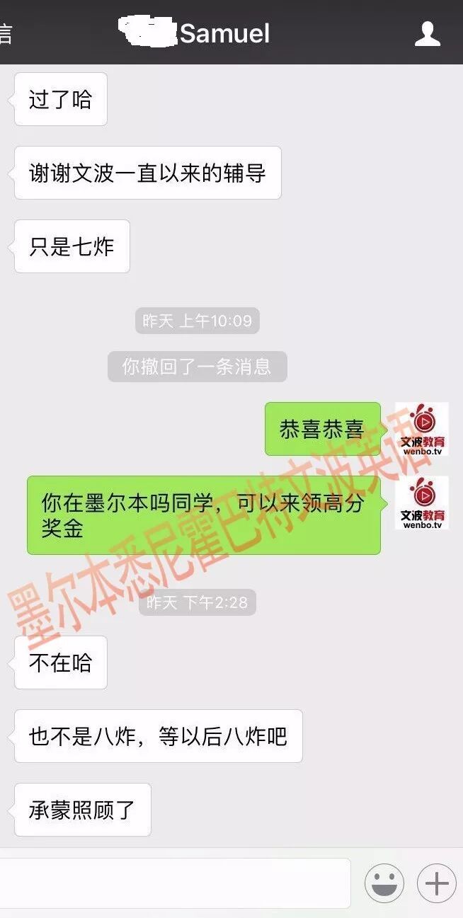 恭喜墨尔本悉尼霍巴特文波PTE学员Samuel同学获得听力66,阅读65,口语74,写作73,总分68分的好成绩!也是十月文波PTE第85位通过四个七四个八的学员.