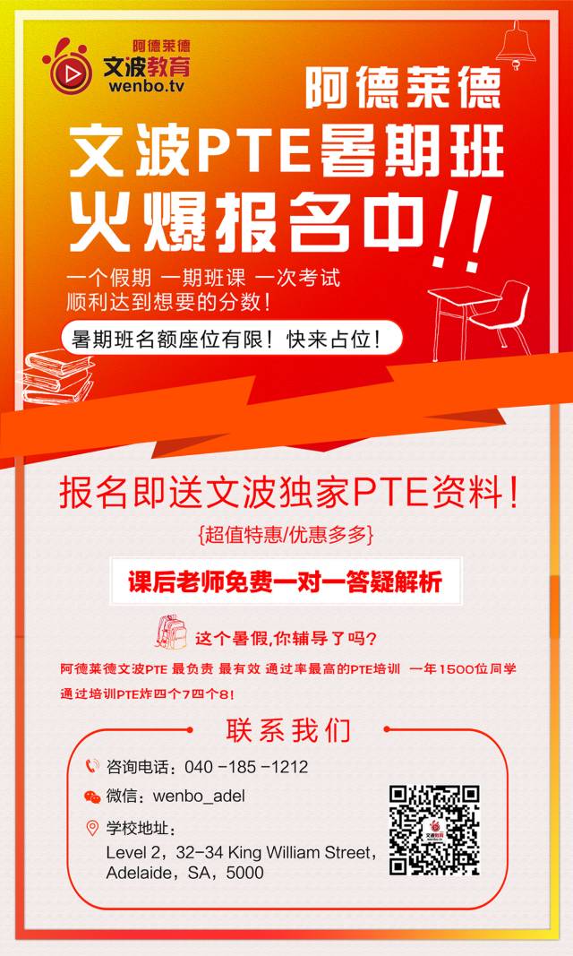 众所周知,英语中有长短元音的对立,一般来说长元音的发音是短元音的两倍,而由于汉语里没有英语这样明确的长短元音之分,中国学生在发音时通常是长元音不够长,短元音发得也不够短促有力,比如cut和cart,sheet和shit,beach和bitch,听起来完全没差别。解决方案:考生中文“口音”重的话,每个单词甚至每个音节都会用相同的时间,这样就会特别呆板,也是Chinglish的罪魁祸首。想要提高自己的英语发音,首先需要清晰地意识到自己存在这样的问题,发现问题的方法就是同英语标准发音进行比较。同学们可以录下自己跟读VOA或者老托93篇讲座的声音,为了避免原文对录音造成的干扰,可以在电脑上插着耳机播放音频、同时用手机进行录音。同时也可以将自己的录音发送给我们阿德莱德文波PTE的老师们,参加过我们阿德莱德文波PTE培训的同学们都知道,一次报名,课后老师给无限量的纠音和答疑解析。通过老师的讲解纠正和自己录音对比,认清自己和英文母语者的差距,然后多加训练,努力模仿,学会掌握快慢和语调去缩小差距,英语读出来感觉就很不一样了。篇幅有限,今天的分享就到这里,后期阿德莱德文波PTE的老师将继续跟大家探讨南部地区同学由于方言而带来的各种的发音误区。欢迎关注:阿德莱德文波PTE 公众号,获取更多更有效的PTE及英语学习经验分享哦~(本篇文章由阿德莱德文波PTE原创总结整理)另外应广大同学要求,阿德莱德文波PTE近期将会全面开展周末班集训!周末班课程正在紧锣密鼓的筹划中!更有量身定制VIP一对一PTE课程培训!有兴趣的小伙伴快来加阿德莱德文波PTE服务微信号:wenbo_adel来咨询吧~两人及以上报名有优惠哦~快喊上小伙伴们来阿德莱德文波PTE咨询吧~超值特惠,优惠多多~联系方式:学校地址:Level 2,32-34 King William Street,Adelaide,SA,5000.咨询电话:040-185-1212咨询微信: wenbo_adel公众号: 阿德莱德文波PTE@阿德莱德文波PTE阿德莱德最负责 最有效 通过率最高的PTE培训阿德莱德文波PTE公众号,与您分享关于英语PTE学习的经验方法与内容咨询!欢迎关注我们!