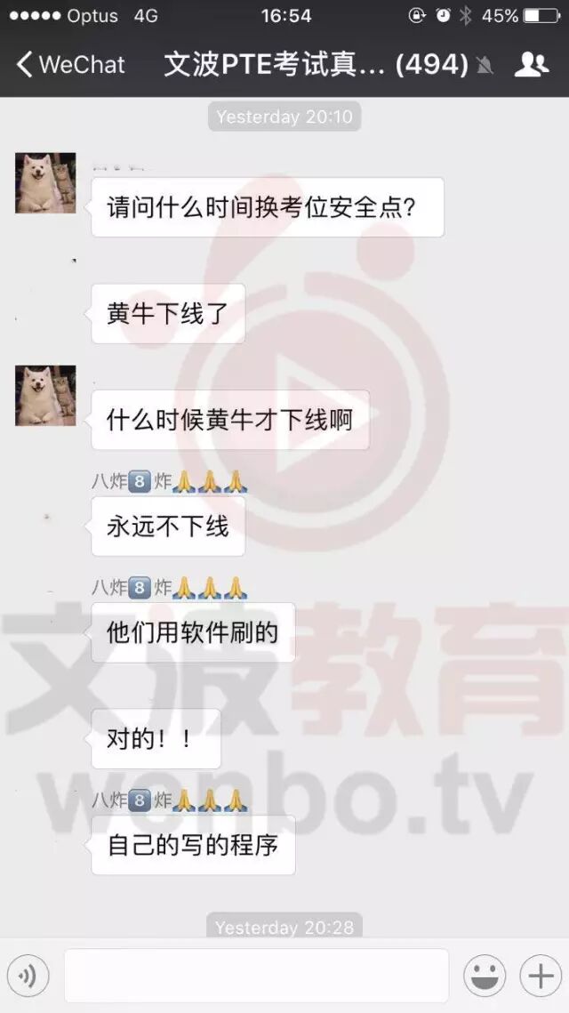 因为换考位的盛行,也催生了另外一个职业——PTE报名黄牛。黄牛们手上要么有考位,要么可以帮你刷到考位。早期的黄牛们靠的是吃苦耐劳的精神,手动一直刷新,碰到刚刚有同学退考或者Pearson临时放出一些考位,就立马帮同学们占住。但黄牛也是人,也要休息,不可能24小时守在电脑面前,而同学们换考位确实会随时发生的。于是,黄牛们也开始运用科技的力量,用软件来占考位。目前墨尔本悉尼文波PTE真题分享群里每天都有同学抱怨考位又被抢了,各个时间段都有。我们也截了几张图,让大家直观感受一下。