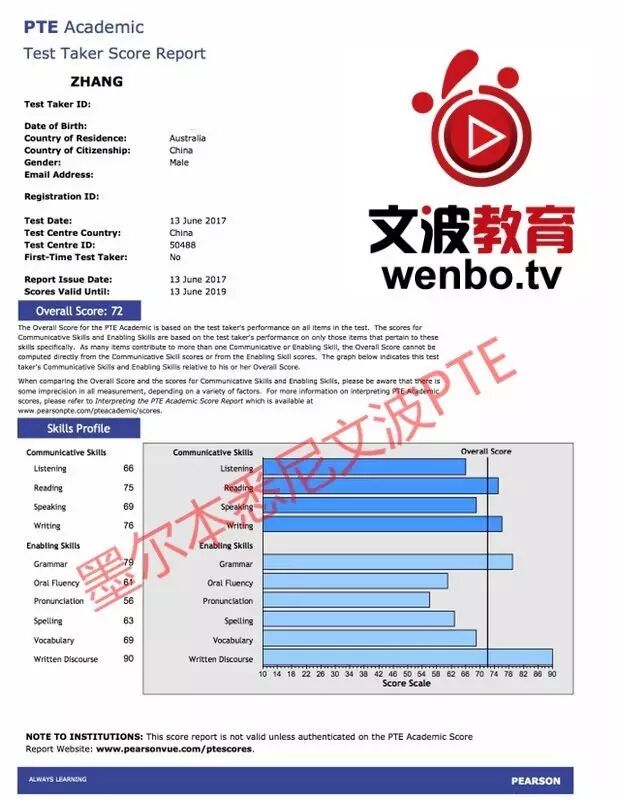 恭喜墨尔本悉尼文波PTE学员Jason获得听力66,阅读75,口语69,写作76,总分72分的好成绩!也是六月文波PTE第33位通过四个七四个八的学员.