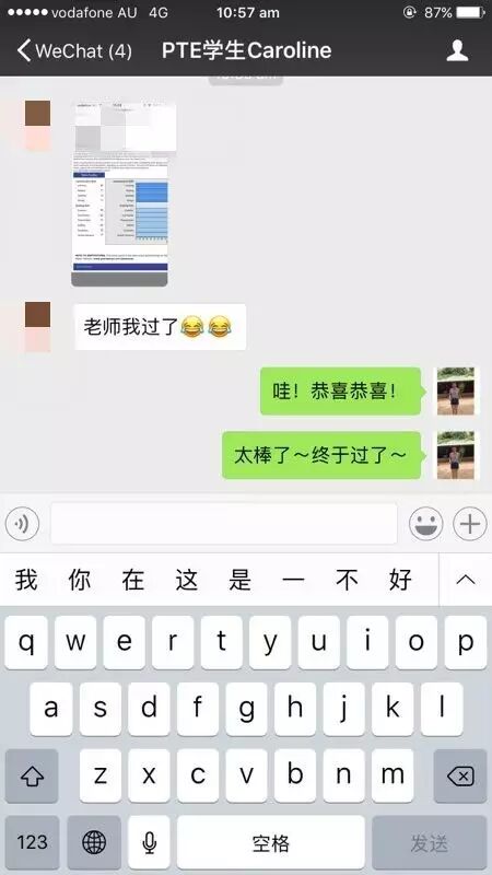 恭喜墨尔本悉尼文波PTE学员Caroline获得听力69,阅读71,口语70,写作71,总分69分的好成绩!也是六月文波PTE第36位通过四个七四个八的学员.
