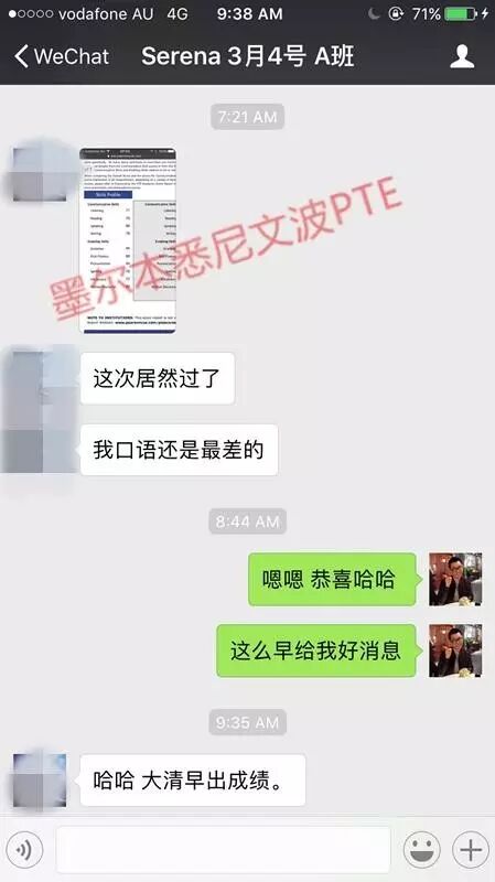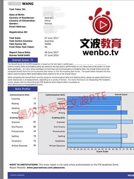 恭喜墨尔本悉尼文波PTE学员Serena获得听力71,阅读70,口语66,写作78,总分71分的好成绩!也是六月文波PTE第40位通过四个七四个八的学员.