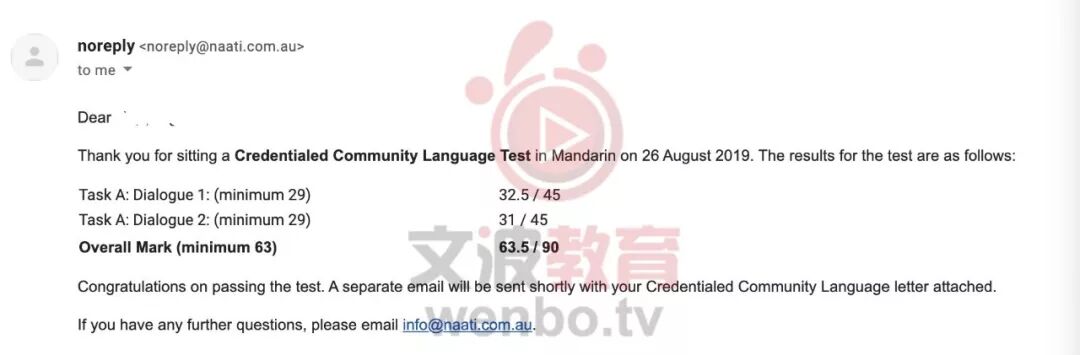 恭喜Wang同学取得CCL63.5分的成绩,成功拿下5分移民加分!