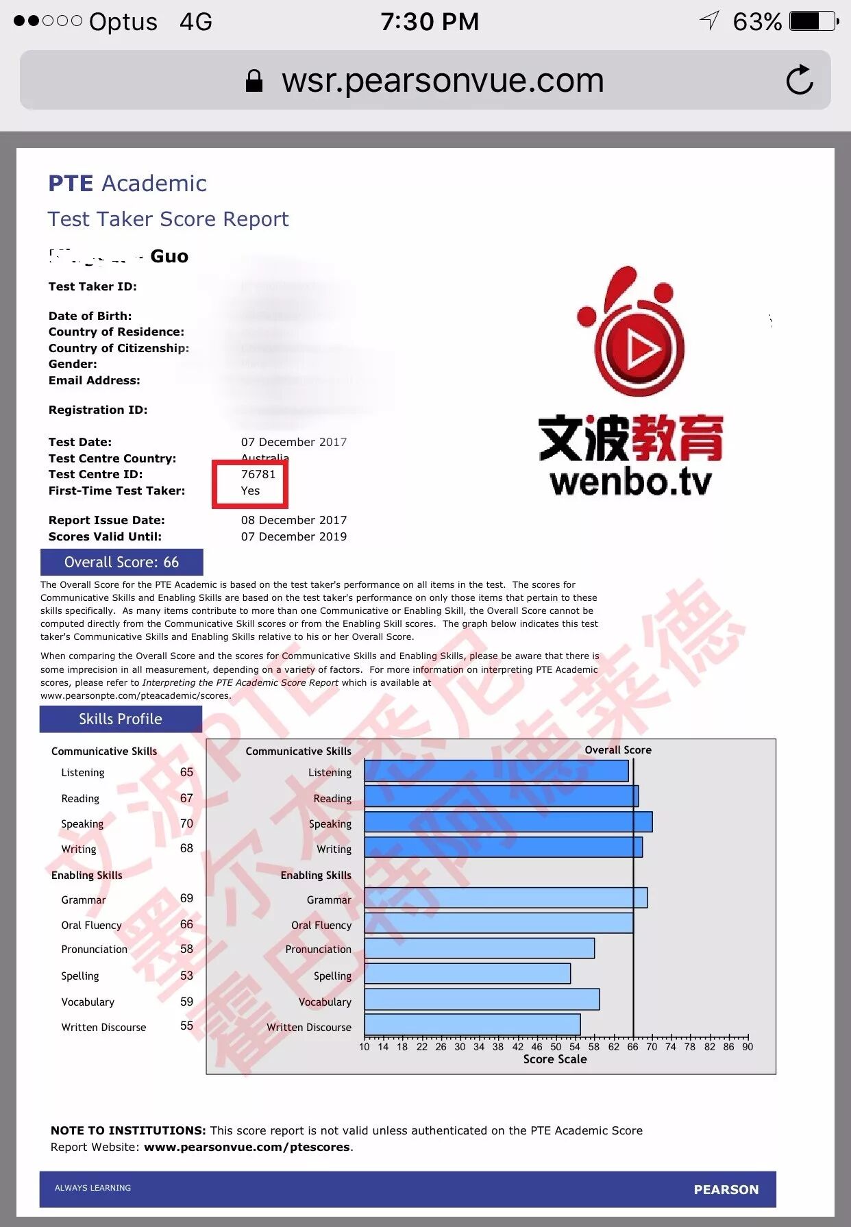 恭喜墨尔本悉尼霍巴特阿德莱德文波PTE学员York同学获得听力65,阅读67,口语70,写作68,总分66分的好成绩!一次7炸的经验分享给大家!