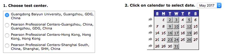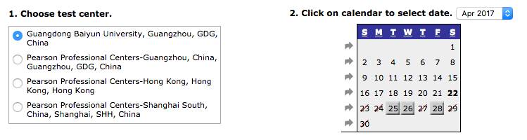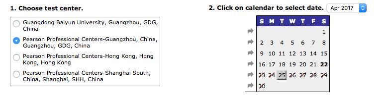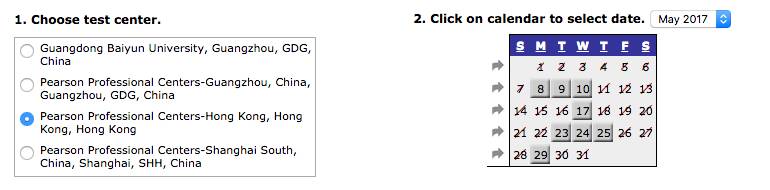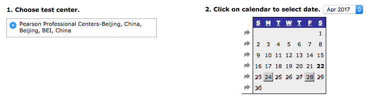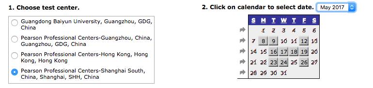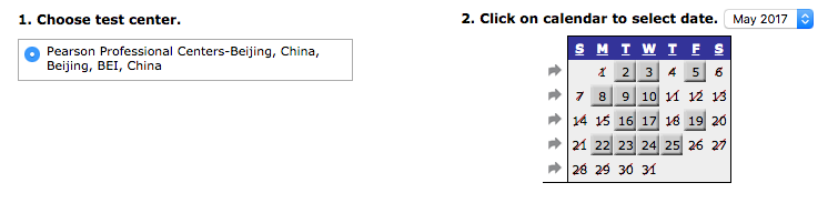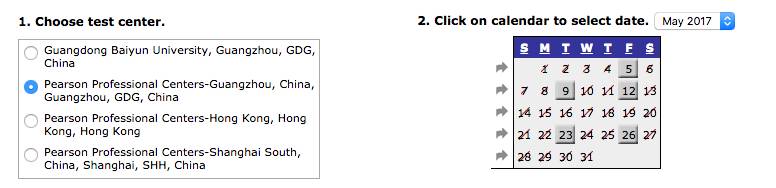 先看我大天朝的培生考点:4月份仍然能报上,5月份考位还很多