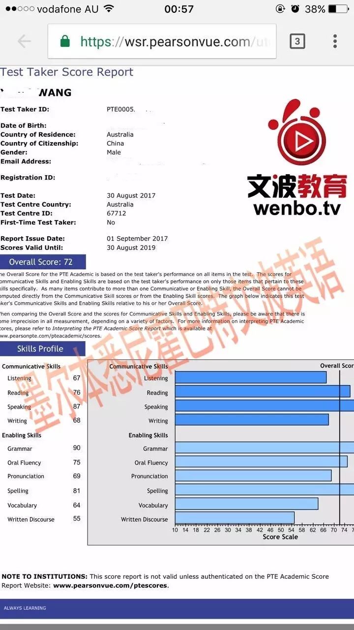 恭喜墨尔本悉尼霍巴特文波PTE学员Wang获得听力67,阅读76,口语87,写作68,总分72分的好成绩!他给大家分享了他的考试经验,希望对大家备考有帮助。