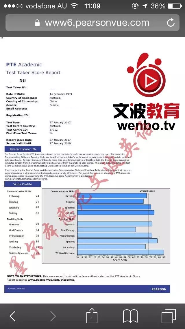 恭喜墨尔本悉尼文波PTE学员Helen终于在1月27号取得听力74,阅读71,口语78,写作81,总分76分的好成绩!也是一月文波PTE第127位通过四个七四个八的学员. 她也应邀给我们分享了她的高分经验: