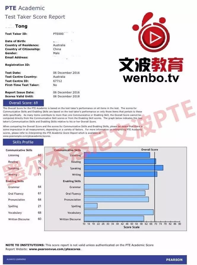 恭喜墨尔本悉尼文波PTE学员Jun在12月6号取得听力65,阅读70,口语76,写作71,总分69分的好成绩!也是十一月文波PTE第22位通过四个七四个八的学员. 他也应邀给我们分享了他的备考经验: