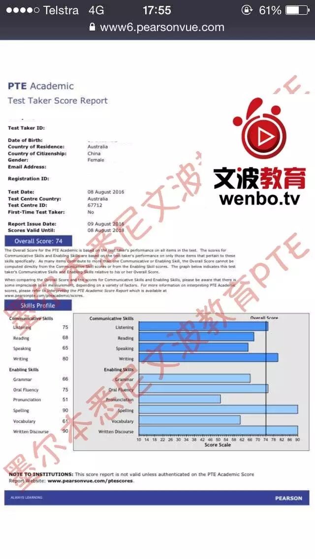 恭喜墨尔本悉尼文波PTE学员Helen在8月9号取得听力75,阅读68,口语65,写作80,总分74的好成绩!也是八月文波PTE第33位通过四个七四个八的学员!以下是她的经验分享: