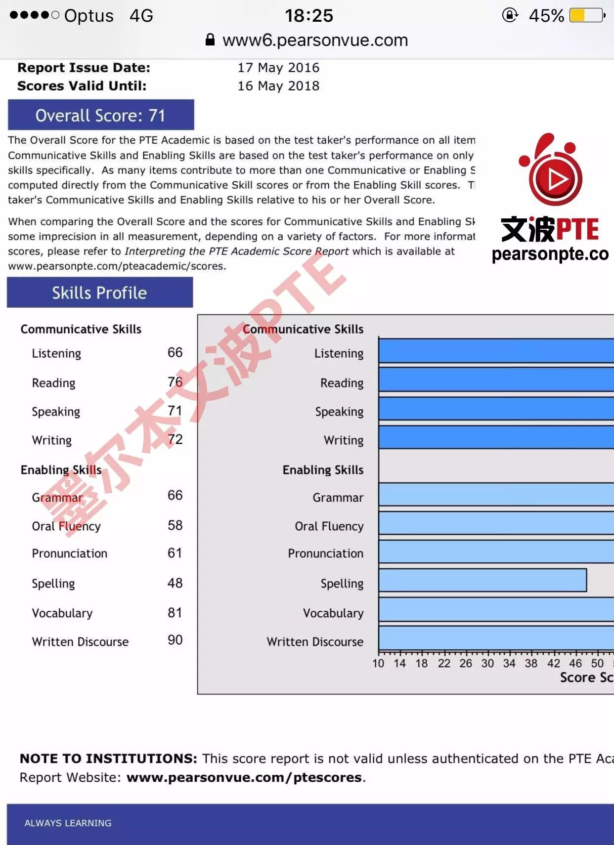 恭喜墨尔本文波PTE保过班学员Lindsay在5月17日的考试中取得听力66,阅读76,口语71,写作72,总分
