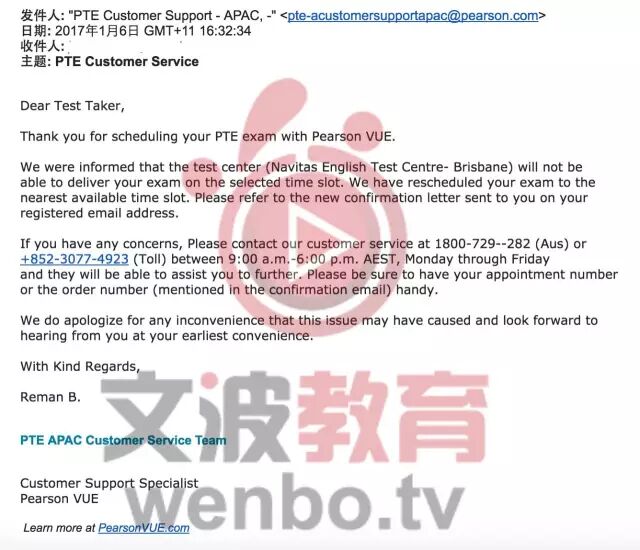 他占这个PTE考位不是用的他自己的名字,而是用的另一个账号。这也就意味着他必须要先用另外一个账号退掉这个PTE考位,才能用自己的账号去抢这个考位。所以他当时过来找我们墨尔本悉尼文波PTE的时候特别的担心。担心本来7:45的这场考试没有,而9点的这场考试万一关闭报名了,那就真的要哭了。但是因为他必须要退掉重新报,所以就冒险了一次。好在当他退掉的时候,发现其实Pearson加开了7:45的这一场PTE考试,而且当天其他场次的考位也放出来了一些。事情至此,他才真正放下心来,选了一场下午的考试。