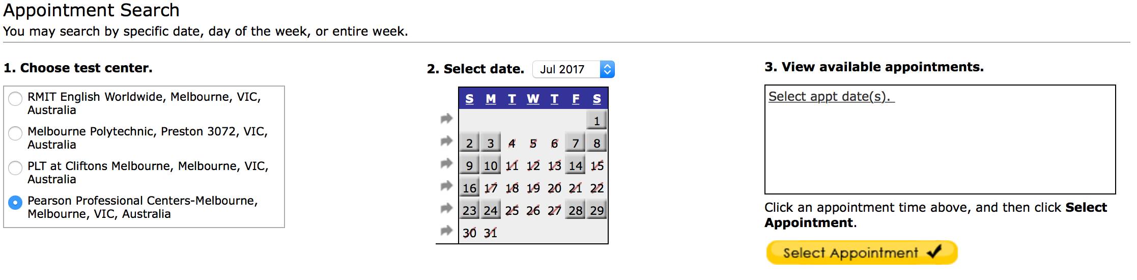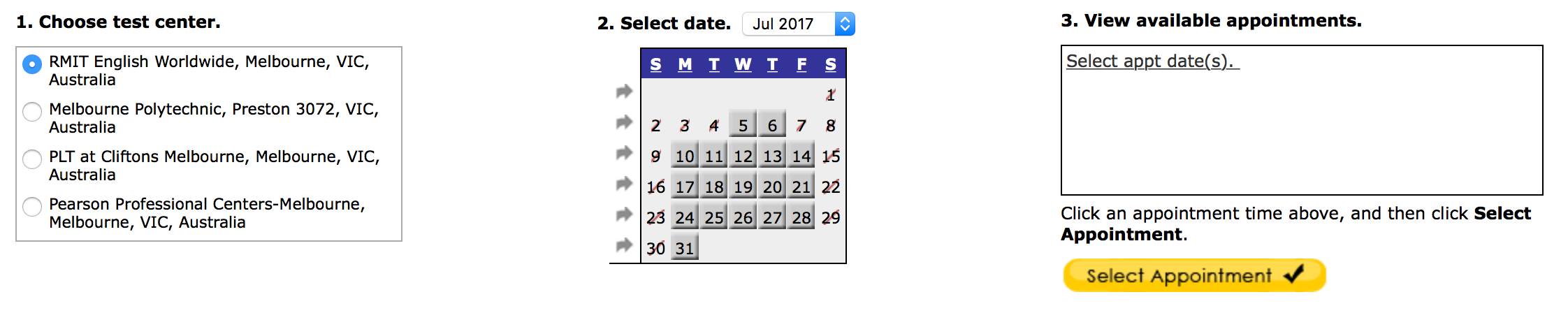 6月份的考位已经全部满了,从7月份的考位情况大家可以看出,RMIT是唯一一个没有限制报名的考场,7月份所有场次都可以报名。Pearson考场周中的考位几乎是没有的,从这点上不排除是报的人数比较多,但更有可能的情况是Pearson官方故意hold了一批考位不放,等到临近考试的时候再放,这点其实是有证据的。细心的同学会发现Pearson考场经常会每个月初放下个月的考位,而最近4月低的时候也放了一批5月份的考位。所以由此推断,Pearson加紧了考位管控,提前考位的放出量非常有限。而Preston的考场也是七月初反而有考位,这也说明官方故意hold住了七月中下旬的考位,等到快到了再放。