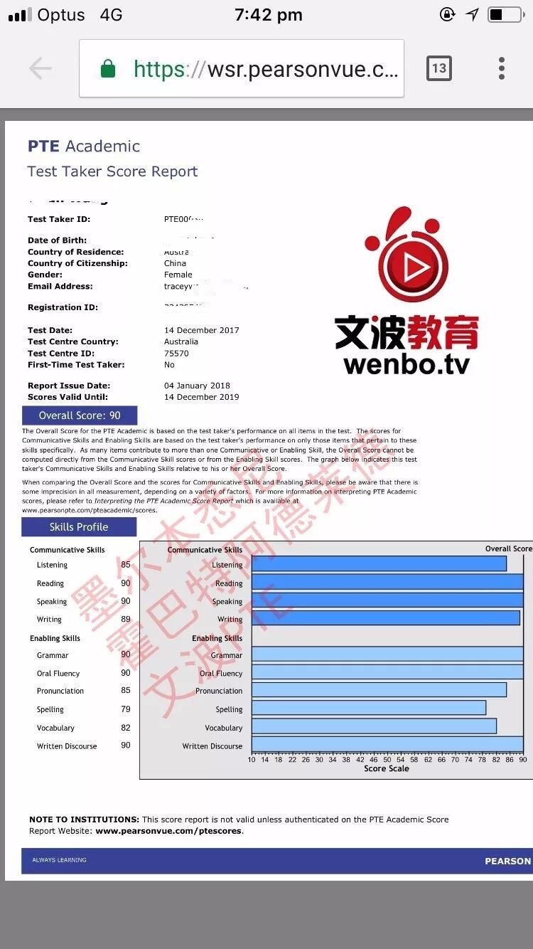 恭喜墨尔本悉尼霍巴特阿德莱德文波PTE学员Tracy同学获得听力85,阅读90,口语90,写作89,总分90分的好成绩!下面是她分享的8炸经验: