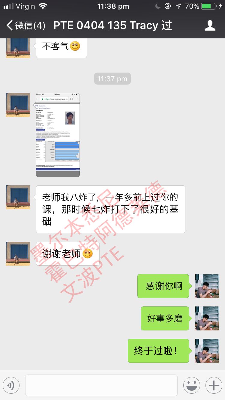 最后感谢当年在墨尔本文波PTE学校上课打下的良好基础和学习习惯,在PTE七炸一年多之后再战本来觉得没信心的,但关注文波微信中这么多PTE经验、技巧的分享,还有机经的帮助,相信大家只要坚持努力,都可以过的。