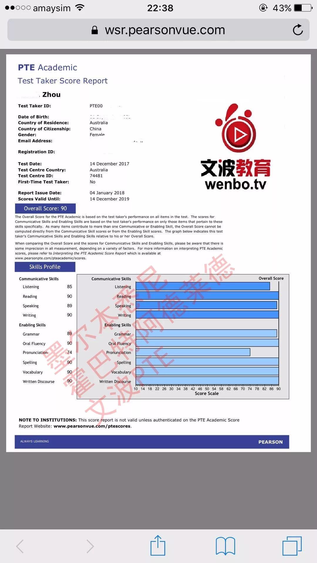 恭喜墨尔本悉尼霍巴特阿德莱德文波PTE学员Lixian同学获得听力85,阅读90,口语89,写作90,总分90分的好成绩!下面是她分享的8炸经验: